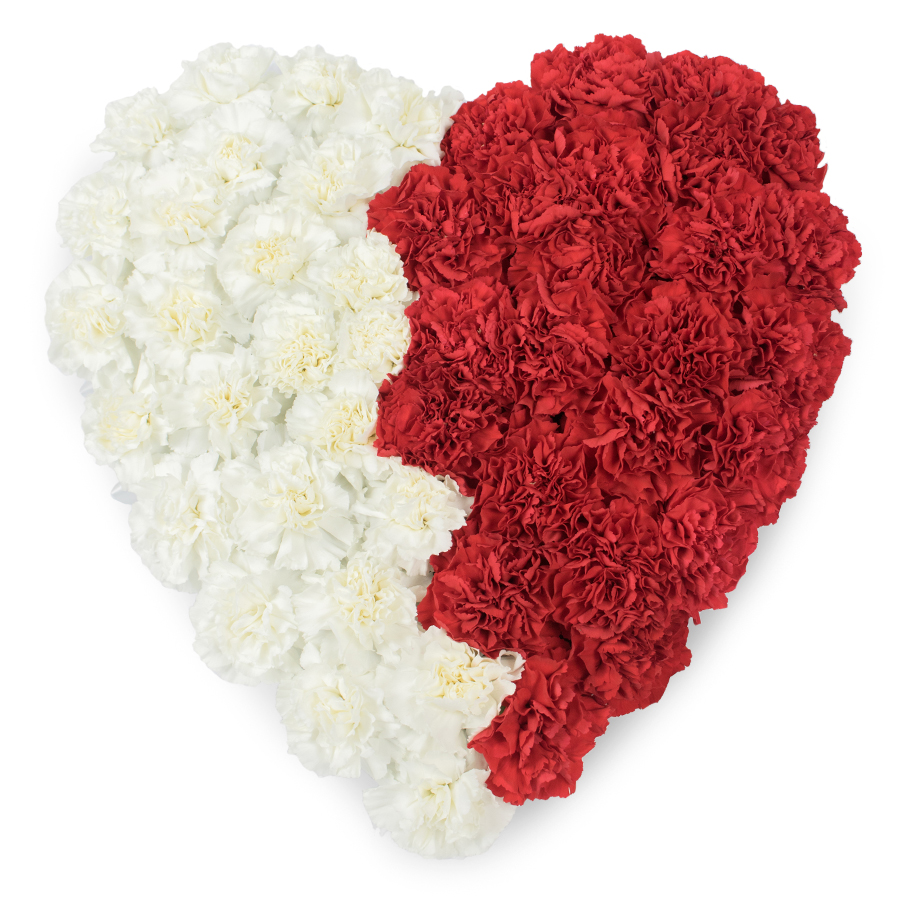 Embodying love and purity, our Love & Purity Carnation Heart bouquet by Handy Flowers features a vibrant mix of white and red carnations. Each flower is carefully hand-selected to ensure maximum freshness and visual appeal.